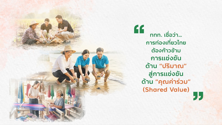 การท่องเที่ยวแห่งประเทศไทย (ททท.) เดินหน้าสานต่อโครงการ Village to the World Season 5 #SustainableAgenda #QueenLegacy น้อมนำแนวพระราชปณิธานด้านการอนุรักษ์ทรัพยากรธรรมชาติของ สมเด็จพระนางเจ้าสิริกิติ์ พระบรมราชินีนาถ พระบรมราชชนนีพันปีหลวง มาบูรณาการกับ 9 ชุมชนท่องเที่ยวและ 9 องค์กรชั้นนำของประเทศ ร่วมวางรากฐานโมเดลการท่องเที่ยวเชิงคุณค่า ภายใต้แนวคิด Shared Value และ ESG Tourism มุ่งยกระดับระบบนิเวศการท่องเที่ยวยั่งยืน พร้อมขับเคลื่อนการสื่อสารผ่านเครือข่ายสื่อมวลชนและจัดทำข้อมูลเชิงประจักษ์ เพื่อผลักดันชุมชนไทย