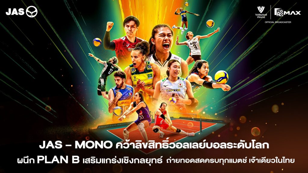 ความร่วมมือระหว่าง JAS และ PLAN B ในครั้งนี้ ไม่เพียงยกระดับมาตรฐานการถ่ายทอดสดวอลเลย์บอลระดับโลกในประเทศไทย แต่ยังเป็นการต่อยอดลิขสิทธิ์กีฬาสู่การสร้าง Sport Marketing Ecosystem ที่เชื่อมโยงคอนเทนต์ แบรนด์ และแฟนกีฬาเข้าด้วยกันอย่างเป็นระบบผ่านแพลตฟอร์ม Monomax และ สถานีโทรทัศน์ช่อง MONO29 เตรียมร่วมส่งแรงเชียร์และสัมผัสความตื่นเต้นของการแข่งขันระดับโลกทุกแมตช์สำคัญ พร้อมติดตามรายละเอียดเพิ่มเติมและความเคลื่อนไหวของศึกวอลเลย์บอล เนชั่นส์ลีก ได้เร็วๆ นี้ ทาง Monomax และสถานีโทรทัศน์ช่อง MONO29