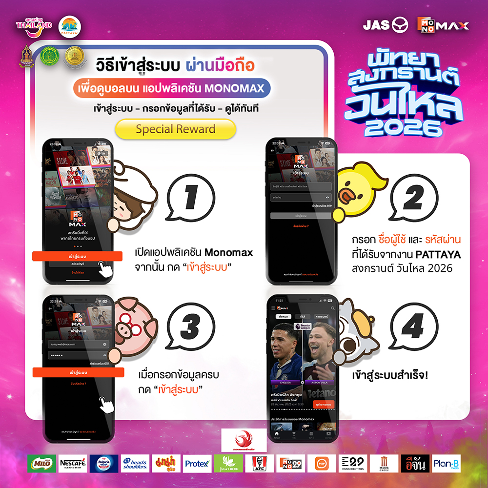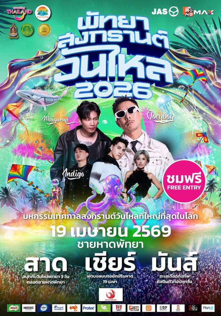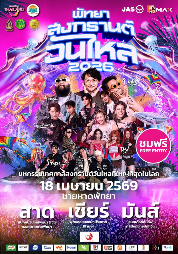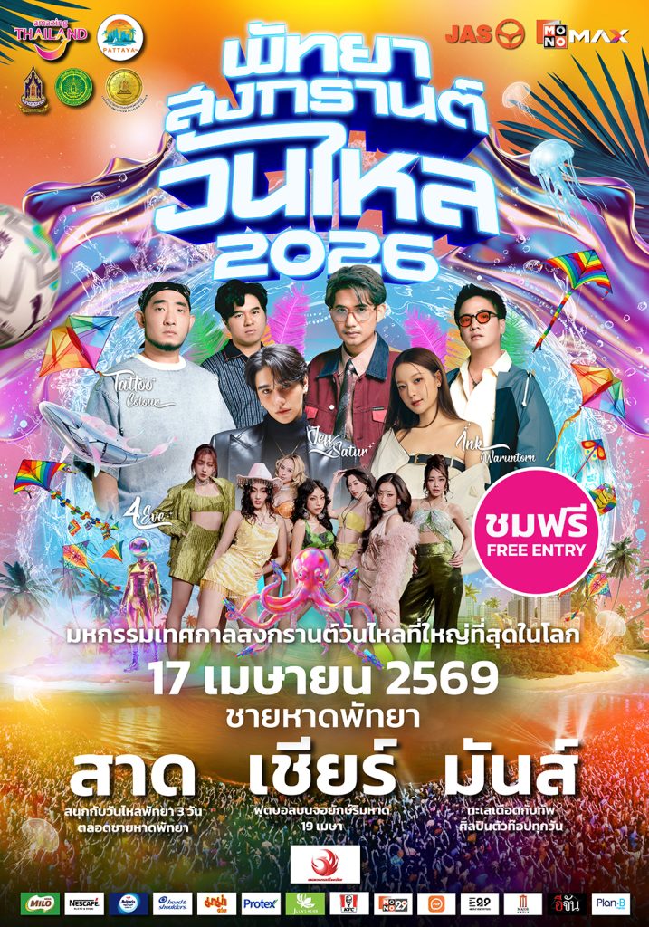 เตรียมพบกับงานสงกรานต์วันไหลริมทะเลสุดยิ่งใหญ่แห่งเดียวในโลก พร้อมมอบประสบการณ์ความบันเทิงครบวงจร ทั้งเล่นน้ำ เชียร์บอล และชมคอนเสิร์ต ภายใต้ความร่วมมือของ การท่องเที่ยวแห่งประเทศไทย สำนักงานพัทยา, เมืองพัทยา และ สำนักงานวัฒนธรรมจังหวัดชลบุรี ร่วมกับ MONOMAX (โมโนแม็กซ์) จัดงาน “พัทยา สงกรานต์ วันไหล 2026” เพื่อตอกย้ำภาพลักษณ์เทศกาลระดับแลนด์มาร์คของเมืองพัทยาในสายตานักท่องเที่ยวทั่วโลก