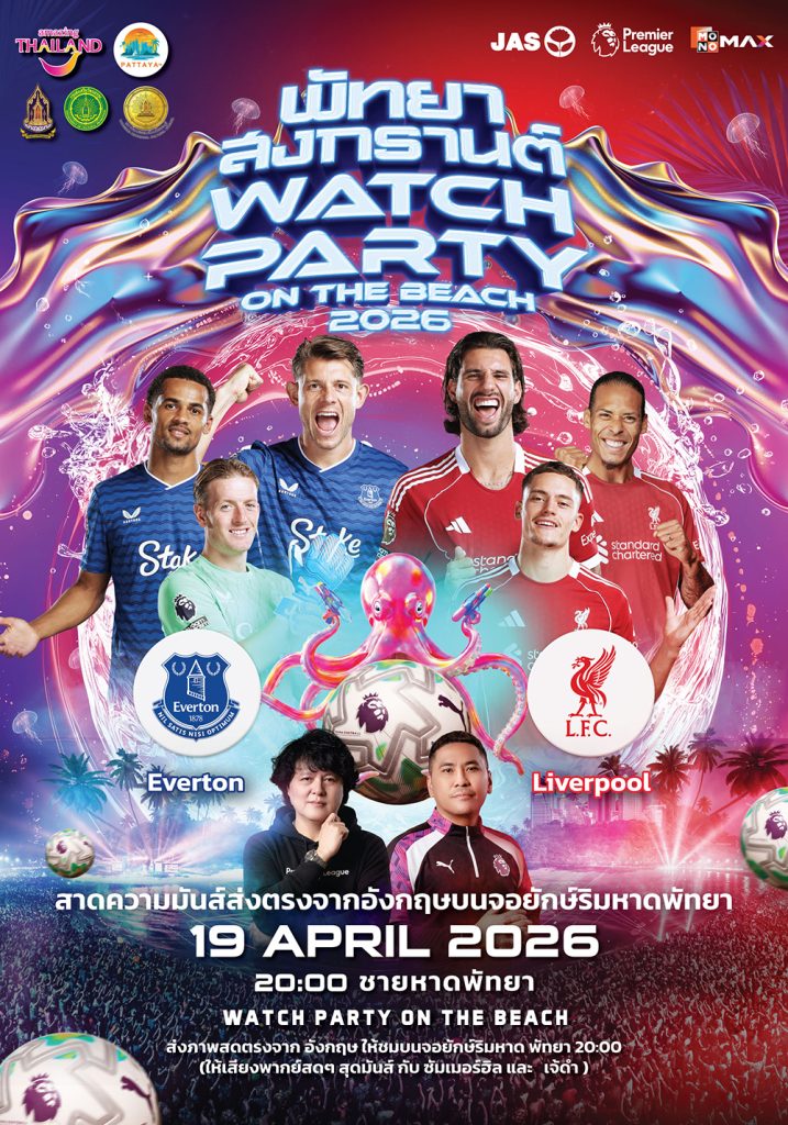 โดยวันที่ 19 เมษายน พบกับไฮไลต์พิเศษเอาใจคอบอลกับการถ่ายทอดสดศึก Premier League บนจอยักษ์ริมชายหาด ในแมตช์แห่งศักดิ์ศรีระหว่าง Liverpool พบ Everton ถ่ายทอดสดจาก Hill Dickinson Stadium ให้แฟนบอลได้ร่วมเชียร์ทีมรักแบบใกล้ชิด ท่ามกลางบรรยากาศสุดคึกคักริมทะเล สำหรับนักท่องเที่ยวสามารถลงทะเบียนเข้าร่วมงานวันไหลพัทยา 2026 ล่วงหน้า ผ่านแอปพลิเคชัน PEEP SHARE โดยสแกน QR Code เพื่อดาวน์โหลดได้ทันที