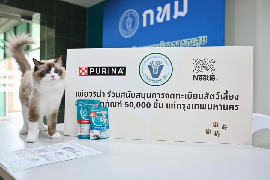 กรุงเทพฯ – 7 เมษายน 2569 – เพียวริน่า โดย บริษัท เนสท์เล่ (ไทย) จำกัด ร่วมส่งเสริมการยกระดับมาตรฐานการดูแลสัตว์เลี้ยงในกรุงเทพมหานคร มอบผลิตภัณฑ์อาหารแมวกว่า 50,000 ชิ้น ให้กับสัตว์เลี้ยงที่เข้ารับบริการในโครงการฝังไมโครชิปและจดทะเบียนสุนัข/แมว ซึ่งเป็นโครงการสำคัญในการยกระดับมาตรฐานการดูแลสัตว์เลี้ยงในกรุงเทพมหานคร ณ จุดฉีดฝังไมโครชิปและจดทะเบียนสุนัข–แมว