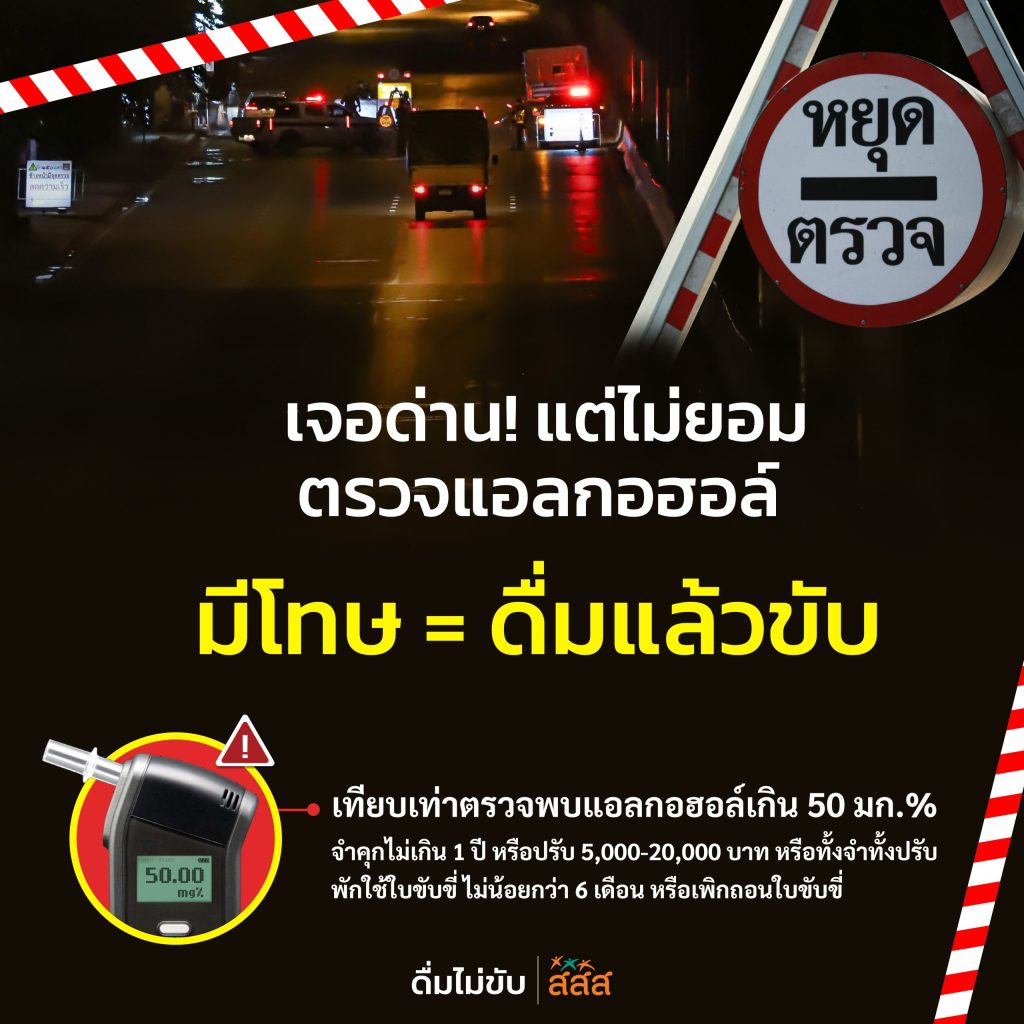 • การปฏิเสธตรวจวัดแอลกอฮอล์ เท่ากับ สันนิษฐานว่า "เมาแล้วขับ" ทันที