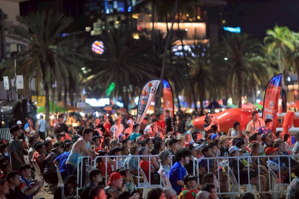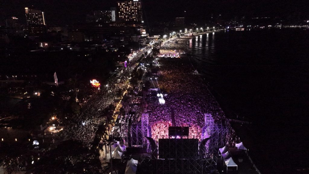 ตลอดทั้งวันพื้นที่ชายหาดถูกเติมเต็มไปด้วยนักท่องเที่ยวทั้งชาวไทยและต่างชาติ ที่ออกมาร่วมสนุกสาดน้ำคลายร้อน และเก็บเกี่ยวช่วงเวลาแห่งความสุขร่วมกันในวันสุดท้าย สร้างสีสันให้เมืองพัทยาคึกคักเป็นพิเศษ ไฮไลต์ความมันส์เริ่มต้นด้วยคอนเสิร์ตริมทะเลจาก Maiyarap ที่ขนเพลงฮิปฮอปสุดเดือดมาปลุกอารมณ์ให้คนดูโยกตามทั้งหาด ก่อนจะส่งต่อความร้อนแรงให้ INDIGO ที่เร่งดีกรีความสนุกอย่างต่อเนื่อง เสริมทัพด้วย SPF ที่อัดแน่นเพลงฮิตเอาใจแฟนๆ แบบจุใจ เพิ่มความพิเศษในค่ำคืนสุดท้ายด้วยการถ่ายทอดสดศึกฟุตบอลพรีเมียร์ลีกแมตช์สำคัญ ระหว่าง Liverpool พบ Everton และ Manchester City พบ Arsenal จาก Hill Dickinson Stadium เปิดพื้นที่ให้แฟนบอลได้ร่วมเชียร์กันแบบเอ็กซ์คลูซีฟริมทะเล ท่ามกลางบรรยากาศสุดคึกคัก ผสานความมันส์ของดนตรีและกีฬาเข้าไว้ด้วยกันอย่างลงตัว