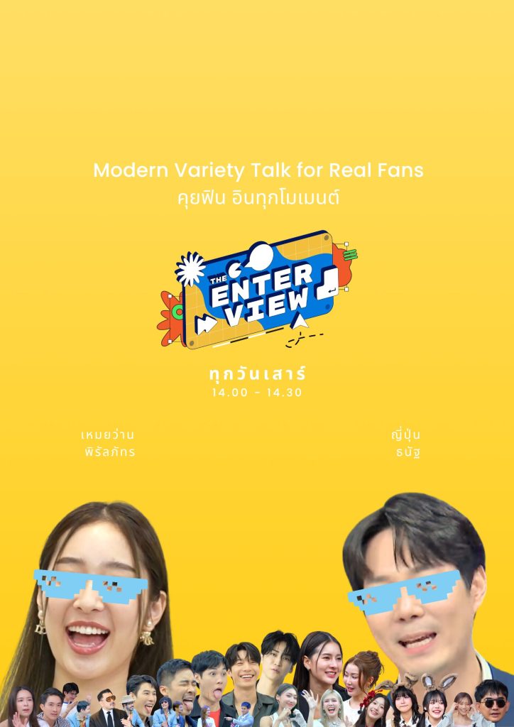 พูดคุยกับศิลปิน ดารา นักร้อง ชื่อดัง ถึงผลงานใหม่ และ กิจกรรมเซอร์วิสแฟนๆ แบบ จิ้น ฟิน ฟัน สอดคล้องกับชื่อรายการ The Enterview ที่มาจาก Entertainment บวกกับ Interview โดย 2 พิธีกร ญี่ปุ่น ธนัฐ และ ว่าน พิรัลพัชร ที่จะสลับกันมาสร้าง Monent ปั่นป่วนให้ศิลปินที่แฟนๆ รัก ประเดิมเทปแรกด้วยกลุ่มศิลปินหนุ่มสุดโฮ้งอย่าง หนุ่มๆ Proxie